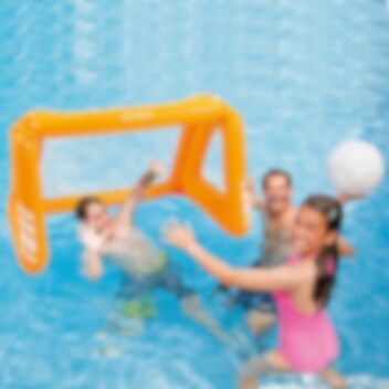 Intex Goal är ett smart och roligt uppblåsbart mål för både utomhus och inomhus bruk. Målet är 124 cm x 84 cm. Till målet hör två påsar som kan fyllas tex med strandsand, så att målet inte flyttar på sig när det blåser. Använd målet i poolen, trädgården, i parken, på stranden eller inomhus.