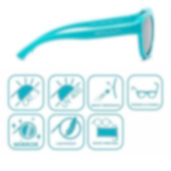 Koolsun Air Capri Blue är tåliga, snygga och skyddande solglasögon för barn i modern design och med bra passform. Koolsun solglasögon Air Phantom Black har pilotform och har tålig ram och skalmar i flexiblet material (TPE). Spegelglasen i Revo-teknik, som inte kan gå sönder, är gjorda i stark polycarbonat som ger 100 % UV-skydd mot både UV-A och UV-B och har högt motstånd mot repor. Alla Koolsun glasögon levereras med en förvaringspåse gjord i microfiber.