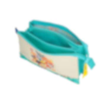 Paw Patrol Pawsome Vibes är en gullig och funktionell necessär för barn tänkt för resa och övernattning, men som även kan användas som pennskrin eller prylväska. Necessären har två lite större fack och ett mindre och stängs med blixtlås. I en egen necessär kan barnet packa allt toalettartiklar som ska med på resan som tandborste, tandkräm, kam, borste, hårspännen och allat annat som ska med.