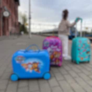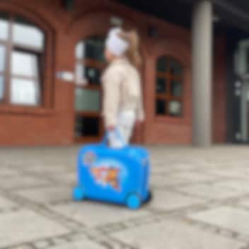 Paw Patrol Friends Blue är en söt och rolig resväska för barn (ca 3-6 år/max 25 kg), där barnet kan åka på väskan. Resväskan har fyra tystgående hjul och dragrem- och bärrem. Den är stabilt byggd och fungerar att åka på för barn upp till 25 kg. Perfekt både som transportmedel och tidsfördriv på flygplatser och bussterminaler. Den klädda insidan har en sida som stängs med blixtlås och en sida med elastiska remmar. Väskan kan dras (barnet åker) av föräldern men också bäras i handtagen eller i remmen som en axelväska.