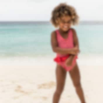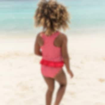 Playshoes Dots Allover är en söt och bekväm baddräkt för barn med UV-skydd (SPF 50+). Baddräkten har bra passform med breda axelband och elastisk linning. Baddräkten torkar snabbt och är gjord i Oeko-Tex certificerat material. Playshoes baddräkt för barn går lika bra att använda i poolen som i havet.