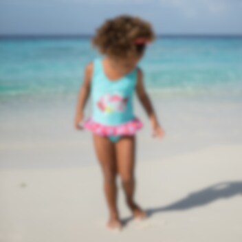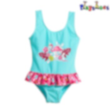 Playshoes Flamingo är en söt och bekväm baddräkt för barn med UV-skydd (SPF 50+). Baddräkten har bra passform med breda axelband och elastisk linning. Baddräkten torkar snabbt och är gjord i Oeko-Tex certificerat material. Playshoes baddräkt för barn går lika bra att använda i poolen som i havet.