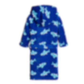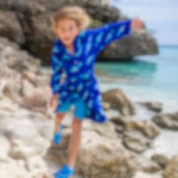 Härligt skön och mjuk badrock till barn i fin design. Playshoes badrock Shark är gjord i Oeko-Tex certifierat material (Standard 100). Badrocken har mysig huva som värmer skönt efter badet och har två fickor framtill, knapp upptill samt midjeskärp. Playshoes badrock passar perfekt efter badet i poolen, i havet eller i badkaret. Eftersom badrocken är gjord i lätt material så är den också enkel att ta med på semestern.