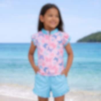 Playshoes Butterfly är ett sett med skyddande och tuffa UV badkläder för barn. Setet med uv-tröja och uv badbyxor är gjort i mjukt och smidigt material med hög solskyddsfaktor. UV-tröjan har skyddande nackkrage. Playshoes UV badkläder för barn, som är gjorda i Oeko-Tex certificerat material, är sköna att ha på sig och torkar snabbt.