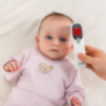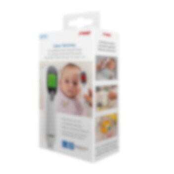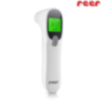 Reer Colour SkinTemp 3-in-1 Infrared är en snabbmätande (ca 1 sekund) digital termometer som fungerar lika som febertermometer som för att mäta temperatur på mat, välling, badvatten och i rummet. Termometern har en tydlig och upplyst (bra för nattbruk) display som ändrar färg från grön till rött beroende av uppmätt kroppstemperatur. Termometern har en speciell inställning för små barn (0-36 månader), då de har en annan normaltemperatur än äldre barn och vuxna, Om temperaturen överstiger 37,9 grader så avges ett varningsljud. Reer Colour SkinTemp 2-im-1 är batteridriven (batterier ingår), och kommer ihåg de 25 senaste mätningarna.