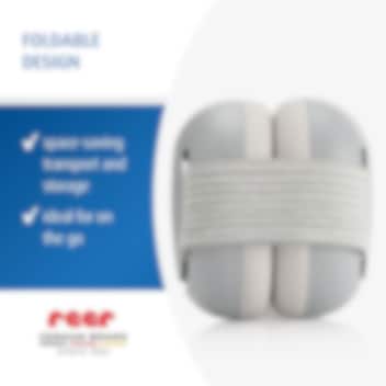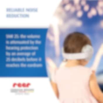 Reer SilentGuard Baby Grey hörselkåpor är ett hörselskydd för baby och små barn som både är bekväma och ger barnet ett riktigt bra skydd i bullriga miljöer med högt ljud, som tex flygresor, konserter och sportevenemang. Reer hörselskydd har mjuka och hudvänliga tätningsringar runt barnets öron, textilklätt (bomull) och ställbart elastiskt huvudband för bästa passform och bekvämlighet för barnet. Hörselkåporna är CE-märkta och har en certifierad dämpningsgrad på SNB 27 dB. Hörselkåporna kan gällas ihop och tar därigenom liten plats när de inte används och förvaras tex i handbagaget eller i ryggsäcken.