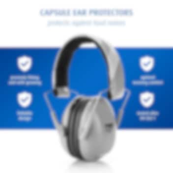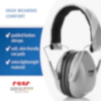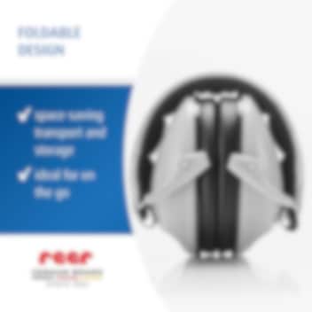 Reer SilentGuard Grå hörselkåpor för barn är ett hörselskydd för barn som både är bekväma och ger barnet ett riktigt bra skydd i bullriga miljöer med högt ljud, som tex flygresor, konserter och sportevenemang. Reer hörselskydd har mjuka och hudvänliga tätningsringar runt barnets öron, textilklätt (bomull) och ställbart huvudband för bästa passform och bekvämlighet för barnet. Hörselkåporna är CE-märkta och har en certifierad dämpningsgrad på SNB 27 dB. Hörselkåporna kan fällas ihop och tar därigenom liten plats när de inte används och förvaras tex i handbagaget eller i ryggsäcken.