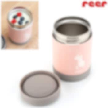 Reer ColourDesign Light Pink är en varm- och kallhållande mattermos tillverkad i rostfritt stål som gör att maten håller sig sval och fräsch länge eller varm i upp till 6 timmar. Fyll mattermosen med varm eller kall mat och mata ditt barn när det blir hungrigt tex på flygplatser, på bussar, på restaurangen eller när du är hos släkt och vänner. Du slipper att leta efter grytor, mikrovågsugnar och spisar för att värma ditt barns mat.