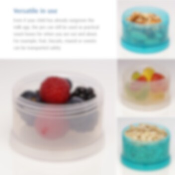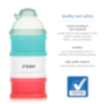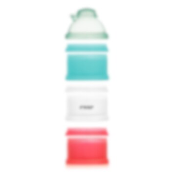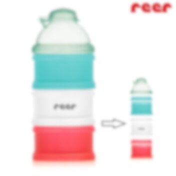Reer Milkpowder Portioner är en smart behållare för mjölkpulver och modersmjölksersättning. De tre behållarna, som vardera rymmer ca 60 gram, skruvas fast ovanpå varandra. Behållarna kan även användas en och en. Den översta behållaren stängs med en praktisk tratt med lock. Tratten används för att lättare fylla nappflaskan med mjölkpulvret. Reer mjölkpulverbehållare är perfekt att ta med på resan eller när du är utanför hemmet.