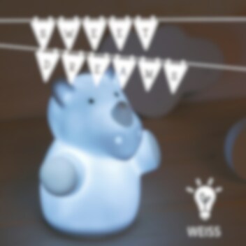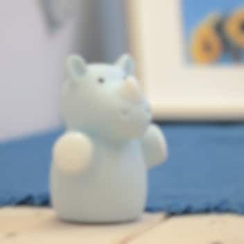 Reer Mini Zoo Rhino är en gullig och fin nattlampa för barn i form en noshörning. Nattlampan är batteridriven och lyser med modern Led-teknik som inte avger värme och är fri från BPA och Ftalater. Batterierna sitter säkert fast inuti i lampan och batterilocket fastgörs med skruv så att barnet inte kan kom åt dem.