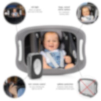 Reer BabyView är en smart och funktionell baksätesspegel som gör det enkelt att hålla uppsikt över ditt barn under bilresan – både i dagsljus och i mörker. De inbyggda LED-lamporna, som styrs med en praktisk fjärrkontroll, ger extra god sikt när det är mörkt i bilen. Babyspegelens stora och konvexa spegelyta ger ett brett synfält och kan enkelt justeras för att ge optimal vinkel mot barnet i en bakåtvänd bilbarnstol. Spegeln monteras smidigt på baksätets nackstöd och kan ställas både i höjdled och sidled för bästa möjliga sikt. Tillverkad i okrossbart material är den ett tryggt val för familjens resor.