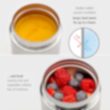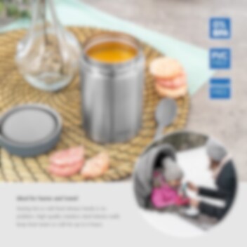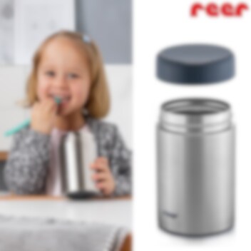 Reer Pure mattermos är tillverkad i rostfritt stål som gör att maten håller sig varm eller kall i upp till 6 timmar. Fyll mattermosen med varm eller kall mat och mata ditt barn när det blir hungrigt tex på flygplatser, på bussar, på restaurangen eller när du är hos släkt och vänner. Du slipper att leta grytor, mikrovågsugnar och spisar för att värma ditt barns mat.
