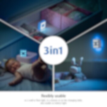 Reer NightGuide är en praktisk och flexibel nattlampa för barn med hög funktionalitet. Reer NightGuide är en sladdlös och battedriven nattlampa som kan användas både som nattlampa (ståendes på ett bord/golv eller hängades på väggen) och som en mjukt lysande ficklamapa för tex för nattens blöjbyten eller matning. Nattlampan har automatiskt på- och avstängning (rörelse och ljus), är gjord i energibesparande LED-teknik (upp till 10.000 timmar) och lyser med en mjukt sken (ca 6500 K.). Då lampan är liten (ca 7 x 7 cm) så är det perfekt att ta med på resan och använda tex i hotellrummet.