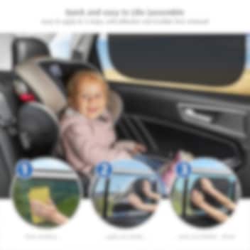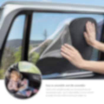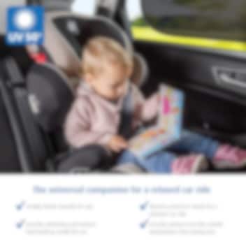 Ihopfällbart och praktiskt solskydd (2 st) till bilens sidofönster. Reer TravelKid Black är självfästande (utan sugproppar) och gjort i sk "pop-up-teknik" vilket gör det enkelt att sätta upp och ta ned solskyddet. Solskyddet är rejält i storlek (51 x 34 cm) och skyddar mot solens strålar med bibehållen uppsikt för föraren. Solskyddet är universalt och passar de flesta bilmodeller.