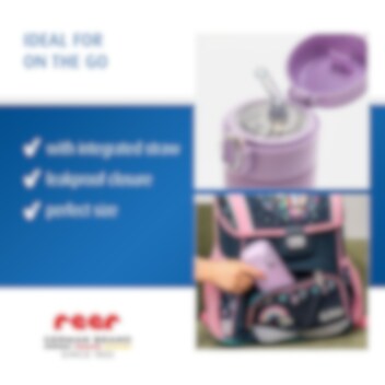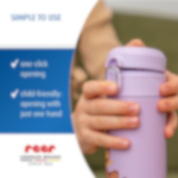 Denna praktiska och hållbara vattenflaska är perfekt för aktiva barn i förskola, skola eller på utflykter. Flaskan rymmer 350 ml och är tillverkad i rostfritt stål, PP och silikon – helt BPA-fri och testad enligt EN 14350 för högsta säkerhet. Med en smart one-click opening öppnas Reer Mermaid vattenflaska enkelt med en hand, vilket gör den smidig för små barn. Det dolda sugröret skyddas mot smuts och håller flaskan hygienisk även på språng.