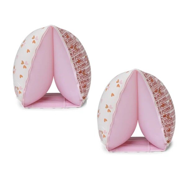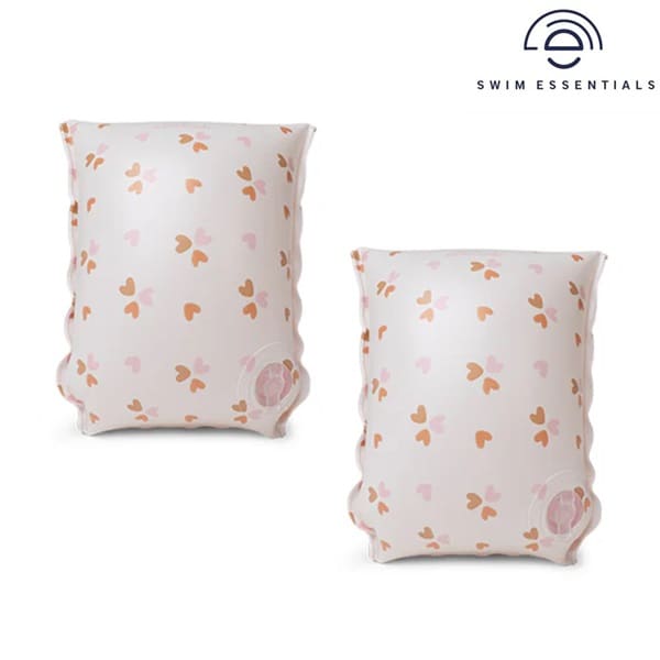 Swim Essentials Cozy Hearts uppblåsbara armpuffar för baby och lite yngre barn är perfekta att använda för soliga och blöta och dagar i hav och pool. Armpuffarna som är 17 x 14 x 6 cm stora har säkerhetsventiler och säkerhetstestande enligt EU-standard (se nedan). Swim Essentials armpuffar är gjorda i tålig 0,25 mm tjock PVC och är helt fria från skadliga kemikalier. Storleken passar barn upp till 15 kg (ca 0-2 år).