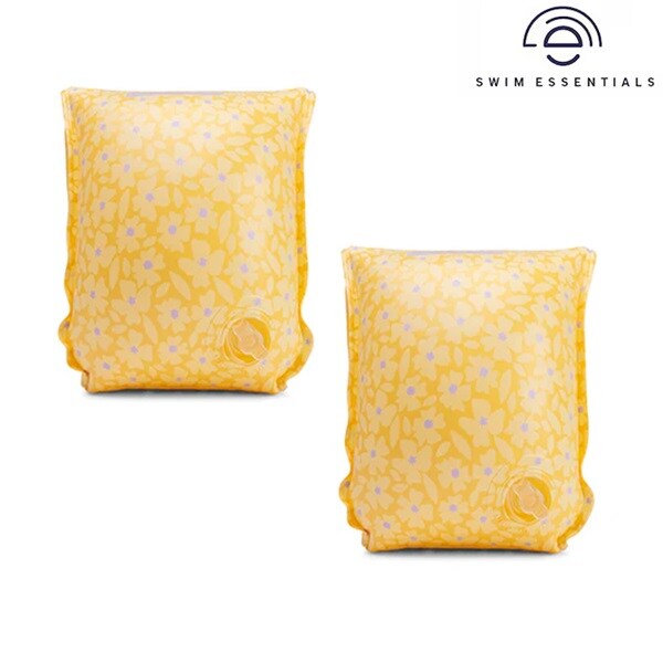 Swim Essentials Yellow Flowers uppblåsbara armpuffar för baby och lite yngre barn är perfekta att använda för soliga och blöta och dagar i hav och pool. Armpuffarna som är 17 x 14 x 6 cm stora har säkerhetsventiler och säkerhetstestande enligt EU-standard (se nedan). Swim Essentials armpuffar är gjorda i tålig 0,25 mm tjock PVC och är helt fria från skadliga kemikalier. Storleken passar barn upp till 15 kg (ca 0-2 år).