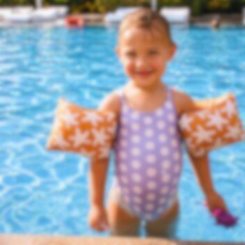 Swim Essentials Sea Stars är ett par uppblåsbara och bekväma armpuffar för barn, perfekta att använda för soliga och blöta och dagar i både hav och pool. Armpuffarna som är 18 x 17 x 9 cm stora har säkerhetsventiler och säkerhetstestande enligt EU-standard (se nedan). Swim Essentials armpuffar är gjorda i tålig 0,25 mm tjock PVC och är helt fria från skadliga kemikalier. Storleken passar barn mellan 15-30 kg (ca 2-6 år).
