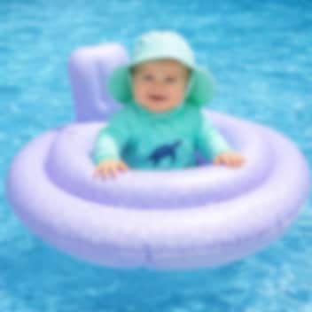 Swim Essentials Baby Float Lilac Leopard är en stabil och funktionell badring och badstol till baby. Babybadringen är 69 cm i diameter och är tänkt för barn upp till 11 kg (0-1 år). För högsta säkerhet så har Swim Essentials baby badring fyra separata luftkamrar med säkerhetsventiler och är säkerhetstestad enligt EUs normer (se standard nedan). Badstolen har två hål i bottnen, så att barnets ben kan hänga fritt.