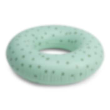 Swim Essentials Green With Dots är en klassisk och stabil uppblåsbar badring (simring) för barn. Perfekt att använda för blöta dagar i hav och pool både på badsemestern och på hemmastranden. Badringen är 65 cm i diameter och har en kapacitet på upp till 50 kg (tänkt för barn 3 år+). Den är gjord i giftfri och tålig PVC, har säkerhetsventil och är säkerhetstestad enligt EU-standard (se nedan).