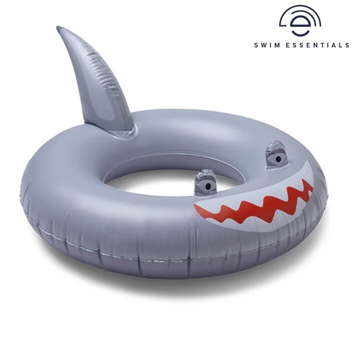 Swim Essentials Grey Shark är en söt och stabil uppblåsbar badring (simring) för barn. Badringen är 55 cm i diameter och har en kapacitet på upp till 50 kg (tänkt för barn 3 år+). Den är gjord i giftfri och tålig PVC, har säkerhetsventil och är säkerhetstestad enligt EU-standard (se nedan). Swim Essential Grey Shark är perfekt att använda härliga bad i hav och pool både på badsemestern och på hemmastranden.