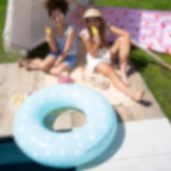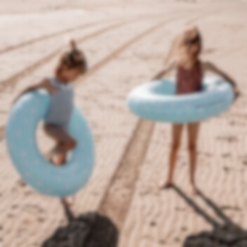 Swim Essentials White Dots XL är en stor och stabil uppblåsbar badring för barn. Badringen är 90 cm i diameter och har en kapacitet på upp till 80 kg (tänkt för barn 6 år+). Den är gjord i giftfri och tålig PVC, har säkerhetsventil och är säkerhetstestad enligt EU-standard (se nedan).