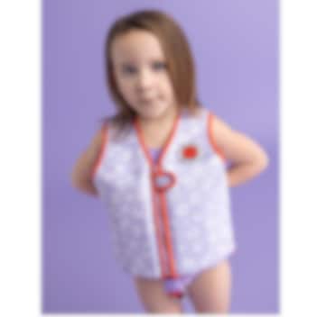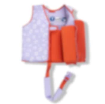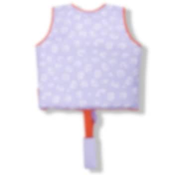 Swim Essentials Lilac Leopard simväst för barn är ett bra flythjälpmedel för både lek och simlärning för barn mellan 3-6 år (18-30 kg). Simvästen är gjord i mjuk och bekväm neopren med väl bibehållen rörelse för barnet i vattnet. Inuti bröstpanelerna finns skum som gör att västen flyter och ger barnet en bra position i vattnet. Simvästen stängs med blixtlås och kardborrespänne och har grenband så att västen hålls på plats.