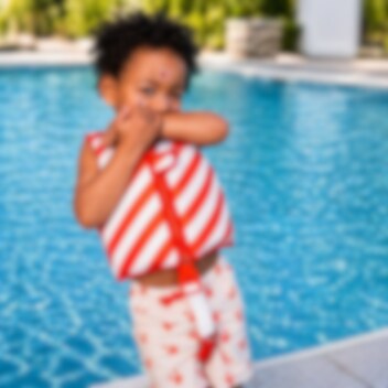 Swim Essentials Oh Crab simväst för barn är ett bra flythjälpmedel för både lek och simlärning för barn mellan 3-6 år (18-30 kg). Simvästen är gjord i mjuk och bekväm neopren med väl bibehållen rörelse för barnet i vattnet. Inuti bröstpanelerna finns skum som gör att västen flyter och ger barnet en bra position i vattnet. Simvästen stängs med blixtlås och kardborrespänne och har grenband så att västen hålls på plats.