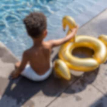 Swim Essentials Split Ring Golden Swan är en fin och uppblåsbar badring och baddjur till barn för sköna lek och bad i både havet och poolen. Badringen, som är 56 cm i diameter, är gjord i tålig och giftfri PVC och har säkerhetsventil. Swim Essentials Split Ring är säkerhetstestad och avsedd för barn mellan 3 år + (max vikt 50 kg).