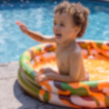 Swim Essentials Camouflage en hållbar och uppblåsbar barnpool för bad och bus. Poolen är 100 cm i diameter och rymmer 60 liter vatten. Swim Essentials barnbassäng har två separata luftkammare med säkerhetsventiler, är säkerhetstestad enligt EU standard och är helt fri från giftiga kemikalier.