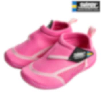Swimpy Cerise badskor är ett par lätta och bekväma badskor för barn och baby gjorda i skön och snabbtorkande neopren med nät och tyg på ovansidan. Swimpy badskor skyddar dina barns fötter mot skarpa stenar och het sand på stranden genom en värmebeständig sula i TPR gummi.
