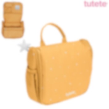Tutete Stars Mustard är en stilfull necessär för barn med många smarta och praktiska förvaringsmöjligheter. I denna necessär får plats allt som ska med på resan eller för övernattning hos släkt och vänner. För lättare åtkomst av innehållet så kan necessären hängas i en hängkrok. Inuti necessären finns många olika fack och fickor samt en spegel. Ytterligare fack och fickor för förvaring finns på necessärens baksida samt på sidorna. Upptill finns ett bärhandtag.