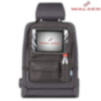Praktiskt sätesskydd med smart och avtagbar ficka och hållare för iPad och surfplatta (upp till 10 tum). Walser Maxi har två fickor för böcker och alla prylar och en praktisk hållare till dryckesflaskor. Sätesskyddet är enkelt att montera och skyddar framsätets baksida mot smuts, repor och slitage.
