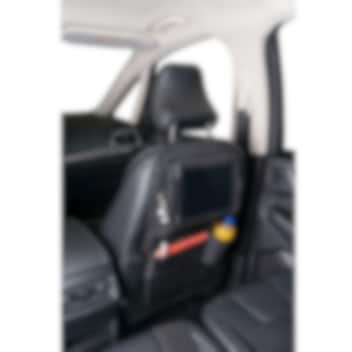 • Kombinerat sätesskydd med fickor och hållare till iPad och surfplatta (upp till 10 tums skärm)