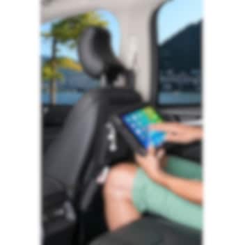 • Fickan till surfplattan är enkel att ta av (fästs med kardborrband) när man lämnar bilen