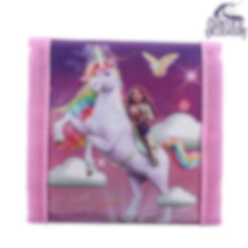 Unicorn Academy It's Fate är en söt och funktionell plånbok för barn. Plånboken är ihopvikbar och blir därigenom liten (10 x 10 cm) för att passa i fickan eller i väskan. Inuti plånboken finns plats för plastkort, sedelfack och en myntficka som stängs med blixtlås. Plånboken viks ihop och stängs med kardborrband.