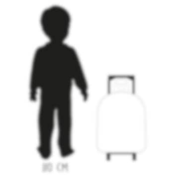 En fin resväska för yngre barn med motiv från filmerna om Greta GRis gjord i 3D (bilden sticker ut ur framsidan på väskan). Resväskan har teleskophandtag, bärhandtag upptill, två hjul samt stödben framtill så att väskan kan ställas vertikalt. Gömda på resväskans baksida finns även vadderade och ställbara axelremmar så att väskan kan bäras som ryggsäck. I resväskans huvudfack ryms leksaker, pyssel, nalle, snacks och andra saker som ska med på resan. Barnresväskan Peppa Pig Friends Around Town passar bra både som handbagage på flyget och som en liten prylväska att ta med på besök hos släkt och vänner.