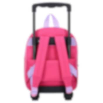 En liten gullig resväska för yngre barn med sött Hello Kitty motiv i 3D (bilden sticker ut ur framsidan på väskan). Resväskan har teleskophandtag, bärhandtag upptill, två hjul samt stödben framtill så att väskan kan ställas vertikalt. Gömda på resväskans baksida finns även vadderade och ställbara remmar så att väskan kan bäras som ryggsäck. I resväskans huvudfack ryms leksaker, pyssel, nalle, snacks och andra saker som ska med på resan. Barnresväskan Hello Kitty Another Dimension passar bra både som handbagage på flyget och som en liten prylväska att ta med på besök hos släkt och vänner.