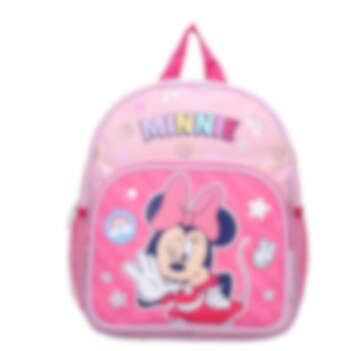 Minnie Mouse Glam It Up är en liten och fin barnryggsäck med en härlig bild med Mimmi Mus. Ryggsäcken har två fack, ett huvudfack och ett mindre fack på framsidan. På sidan av väskan finns två nätfickor för småprylar och dryckesflaska. Ryggsäckens vadderade axelremmar kan justeras i storlek för att sitta bra på barnet. I toppen på ryggsäcken finns ett handtag för att bära den i handen eller för att hänga ryggsäcken på en krok.