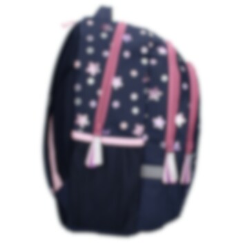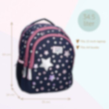 Milky Kiss Fable World är en stor, rymlig och stilffull ryggsäck för lite äldre barn gjord i modern design. Ryggsäcken är gjord i vattenavstötande polyester och har totalt 34,8 liters packutrymme. Milky Kiss Fable World har vadderade och ställbara axelremma, bärhandtag, ett stort rymligt huvudfack, ytterligare två fack samt flaskhållare i nät (mesh) på sidorna. Ryggäscken passar både som skolväska och på resan.