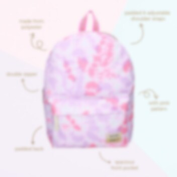 Milky Kiss Love and Laugther är en stilfull, hållbar och funktionell ryggsäck till barn gjord i snygg design. Ryggsäcken har ett huvudfack med gott om plats, en mindre ficka på ryggsäckens framsida, reglerbara och vadderade axelremmar och bärhandtag.